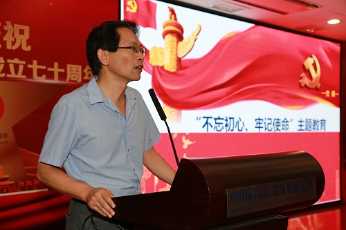 7月25日,微生物所在E301报告厅召开“不忘初心、牢记使命”主题教育活动,党委书记李俊雄、党委副书记、纪委书记杨永峰讲党课。微生物所领导班子成员、党委委员、纪委委员、各支部支委以及机关党支部全体党员七十余人参加了会议。