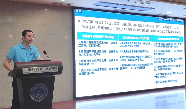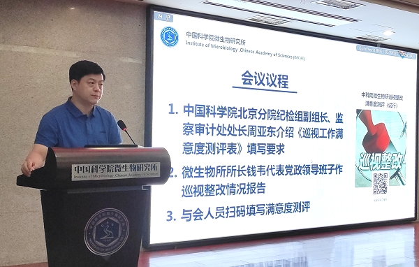 周亚东处长传达了中科院、北京分院关于微生物所巡视满意度测评会议的说明,布置了相关工作。