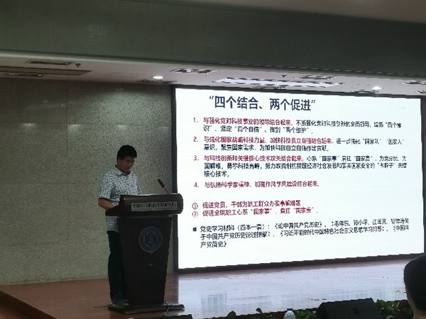 会上,杨永峰书记的专题报告,引发了全体党员的学习讨论,大家积极畅谈学习感想;同时,结合研究所实际,发言献策党建工作。所党建工作处副处长任园园同志强调了本年度的党建工作将结合“基层组织提升年”活动要求,落实“促进党员、干部为职工群众办实事解难题”的任务基调,继续发挥 “党员先锋岗”作用,逐条解决“支部列举问题清单”中的问题,实现“党旗在科研一线高高飘扬”的目标。