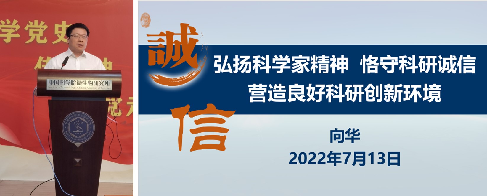 副所长向华作题为《弘扬科学家精神 恪守科研诚信 营造良好科研创新环境》的专题报告。解读了国家、科学院关于加强科技监督和作风学风建设指导性文件及惩戒措施,并结合典型案例介绍了各类科研失信行为的具体表现及产生的后果。他强调要站在建设世界科技强国的战略高度,自觉践行、大力弘扬新时代科学家精神,进一步加强作风和学风建设。