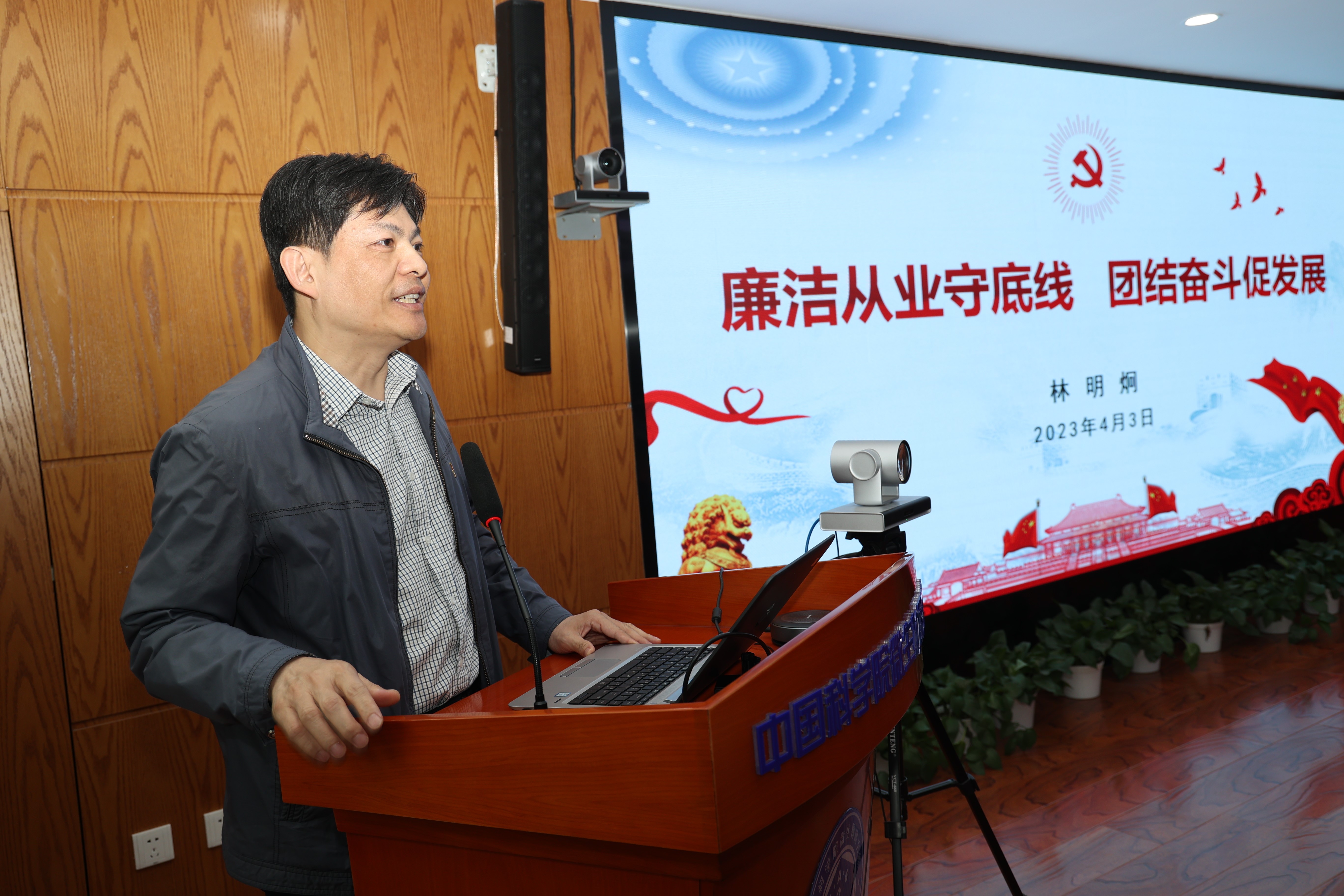 会上,所党委副书记、纪委书记林明炯作题为《廉洁从业守底线团结奋斗促发展》的党课报告,带领大家深入学习贯彻党的二十大报告精神,传达学习中纪委二次全会精神,回顾了习近平总书记关于加强中央和国家机关党的建设工作重要论述,通报了部分违规违纪问题和典型案例,介绍了中科院与北京市共建怀柔科学城的历史背景和发展态势。要求机关同志要树牢政治机关意识,提高政治站位,争当先锋、做好表率,走好第一方阵;要讲规矩、守纪律,在政治上当明白人,在工作上当有为人,在生活上当守井人;要认真贯彻落实院工作会议精神,勤思考、早谋划,充分发挥“两个作用”,推动党建工作与业务工作融合发展。