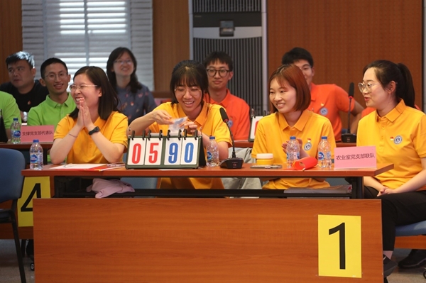 竞答环节开始前,现场全体党员高唱国歌,庄严重温入党誓词。随后,所歌咏协会以一曲《灯火里的中国》表达了对党和国家的衷心祝福,拉开了竞答比赛的序幕。比赛过程高潮迭起,扣人心弦,观众互动气氛热烈,充分展现了研究所党员奋勇向上、敢为人先的精神风貌。经过“争分夺秒”必答题、“通力协作”共答题,“谁与争锋”抢答题三个环节的激烈角逐,最终真菌室党支部联队脱颖而出斩获冠军,农业室党支部联队、病原室党支部联队获得亚军,工业室党支部联队、支撑系统党支部代表队获得季军;资源室党支部联队和机关党支部代表队被授予最佳组织奖。与会领导为获奖队伍颁发了奖状,并鼓励参赛队伍继续发扬勤学精神,不断增强党性修养。