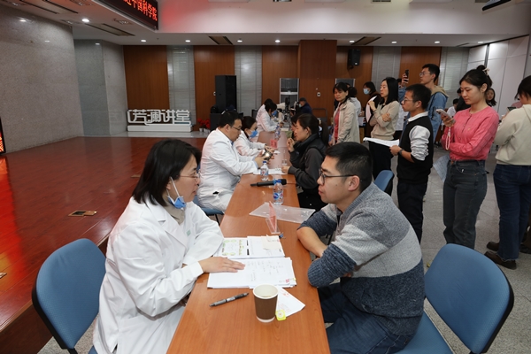 下午,北京同仁医院眼科中心党总支书记、眼科主任接英亲自带队,和30余位医护工作者组织了义诊活动,为微生物所百余名职工、研究生提供了血压、血糖、眼角膜、眼压、眼底等眼科筛查与健康咨询。在眼研所的大力支持和所工会、党建工作处的周密组织下,义诊活动获得圆满成功,不仅切实增强了我所职工和研究生对常见眼科疾病的防治意识,树立了早预防早治疗的健康理念。