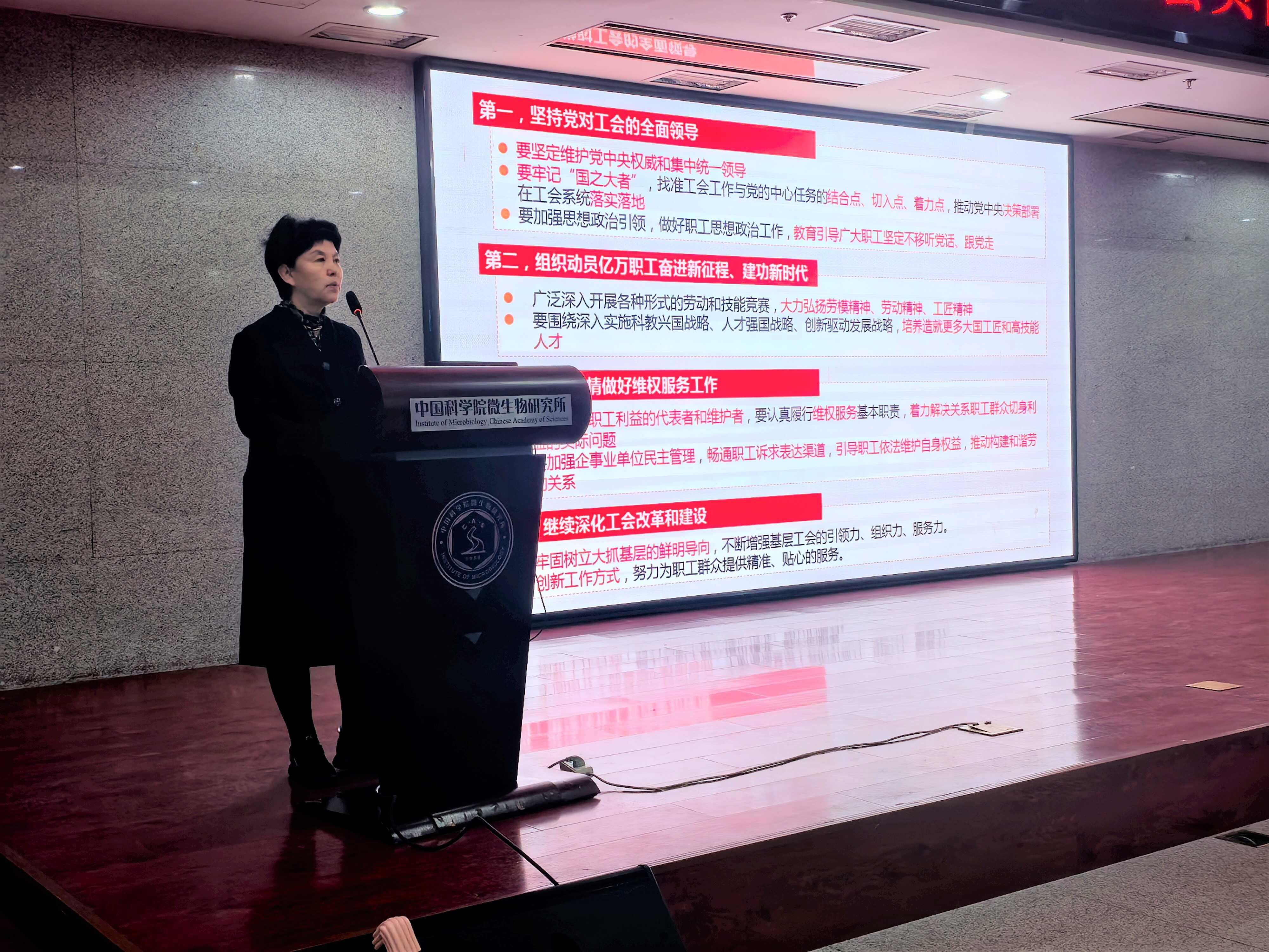 随后,工会主席王丽萍作《发挥桥梁纽带作用,竭诚服务全所职工,以高质量工会工作为加快抢占科技制高点提供基础性保障》工会工作报告。王丽萍介绍了工会工作的定位与思路,报告了2023年以来工会在加强思想政治引领、竭诚服务职工等方面开展的重点工作,并向大会汇报了下一阶段工会工作计划。