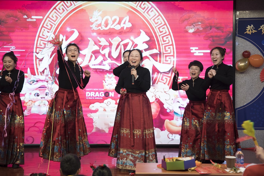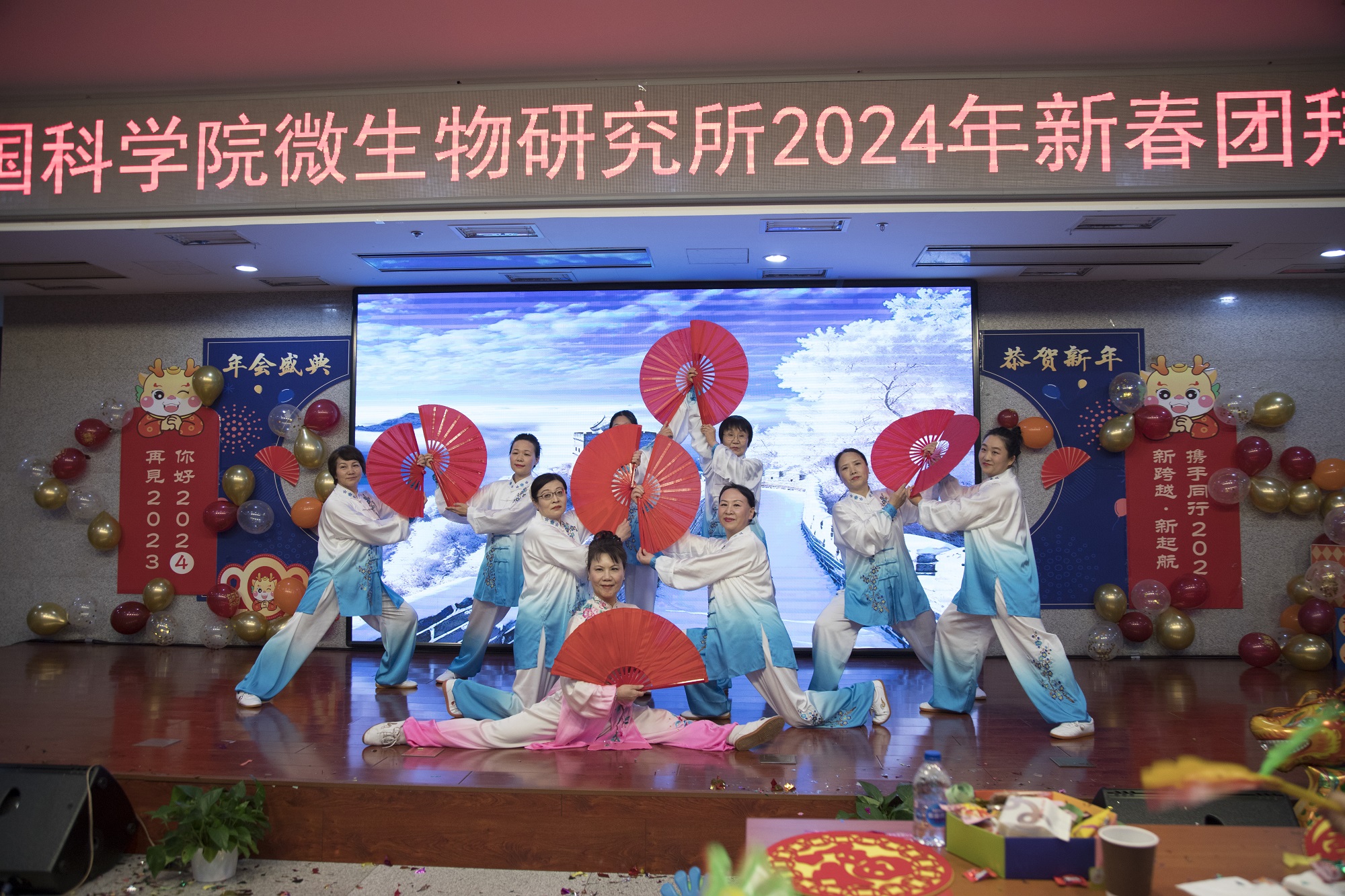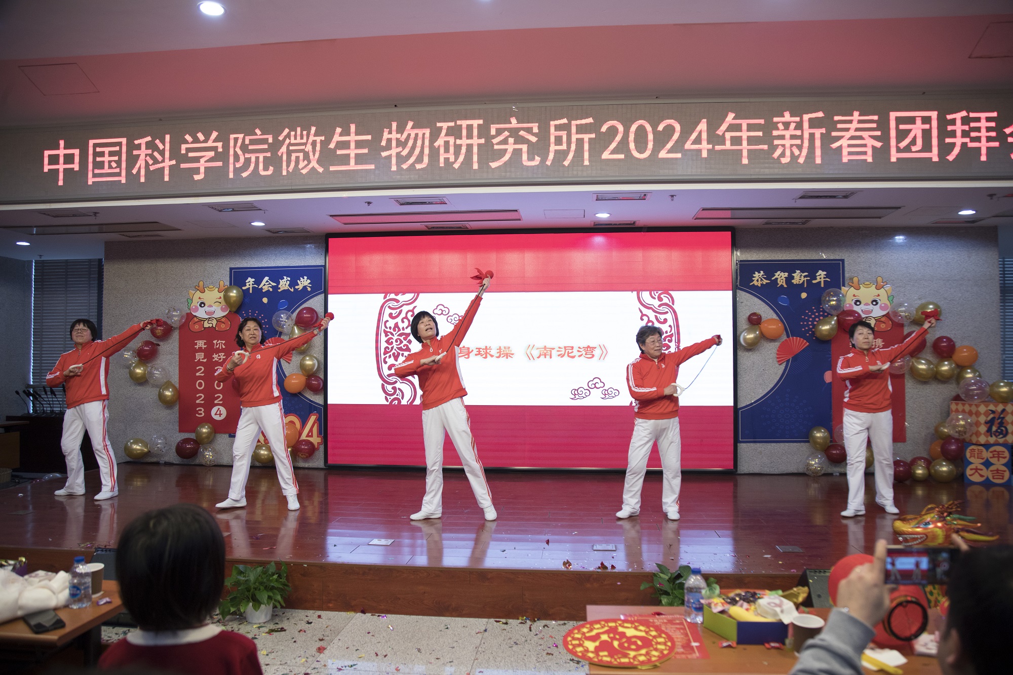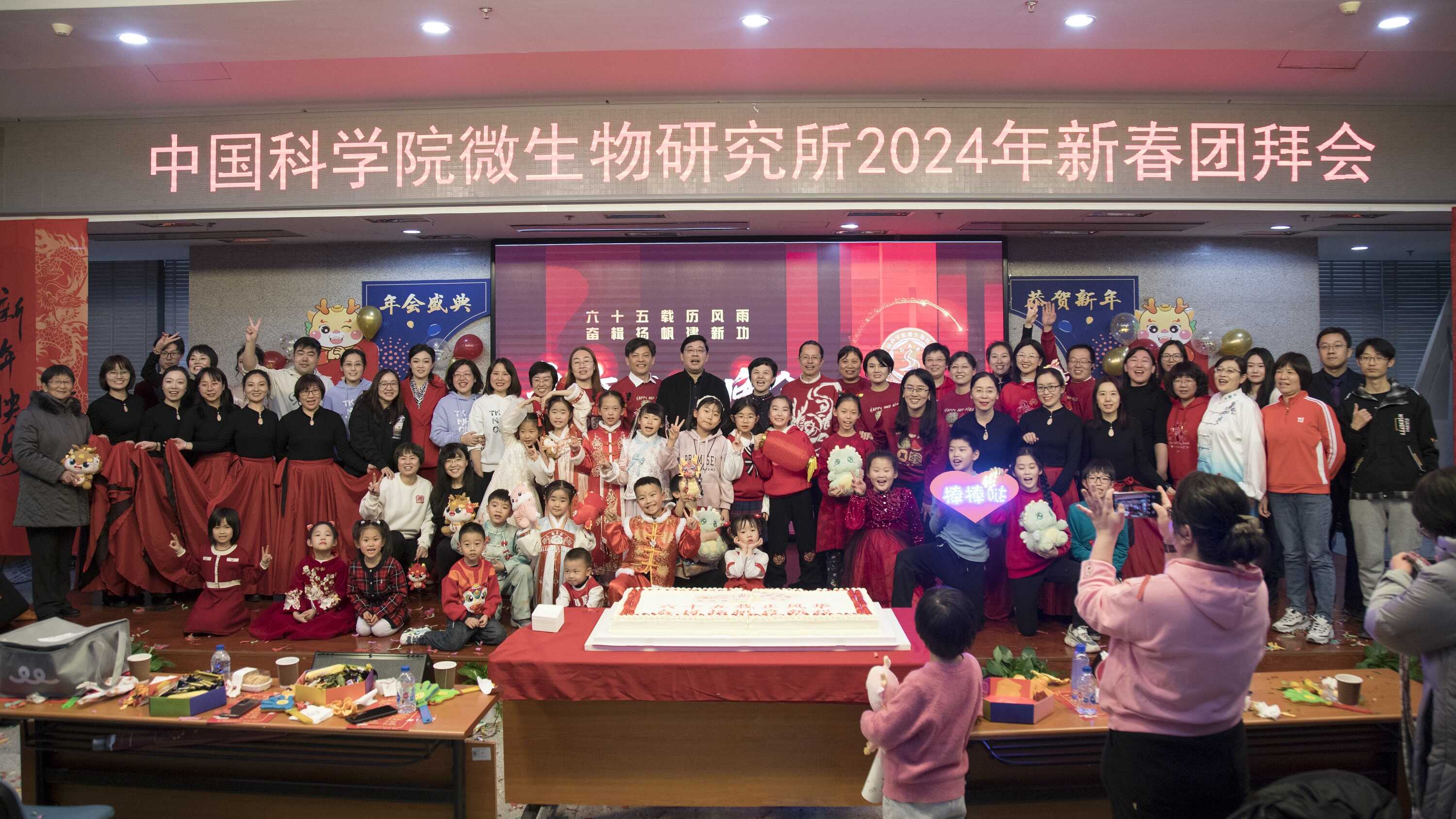 联欢会在《瑞狮闹春》热烈喜庆的氛围中拉开帷幕。开场儿童歌舞《过年了》、钱韦所长带领的舞蹈《蹦蹦哒哒过大年》,直接燃爆了全场的欢乐气氛。暖场节目后,钱韦所长代表研究所领导班子致辞,他指出,今天全所干部职工和研究生欢聚一堂参加迎新春联欢会,我们既要感怀研究所65年历史中为祖国微生物科技事业做出的巨大贡献,更要继往开来、凝心聚力、永立潮头,在龙年到来之际,继续发扬忠诚、团结、勇敢的精神,谱写研究所新时代的伟大篇章。同时,钱韦所长代表研究所领导班子祝全所干部职工和研究生新年快乐、身体健康、阖家欢乐。