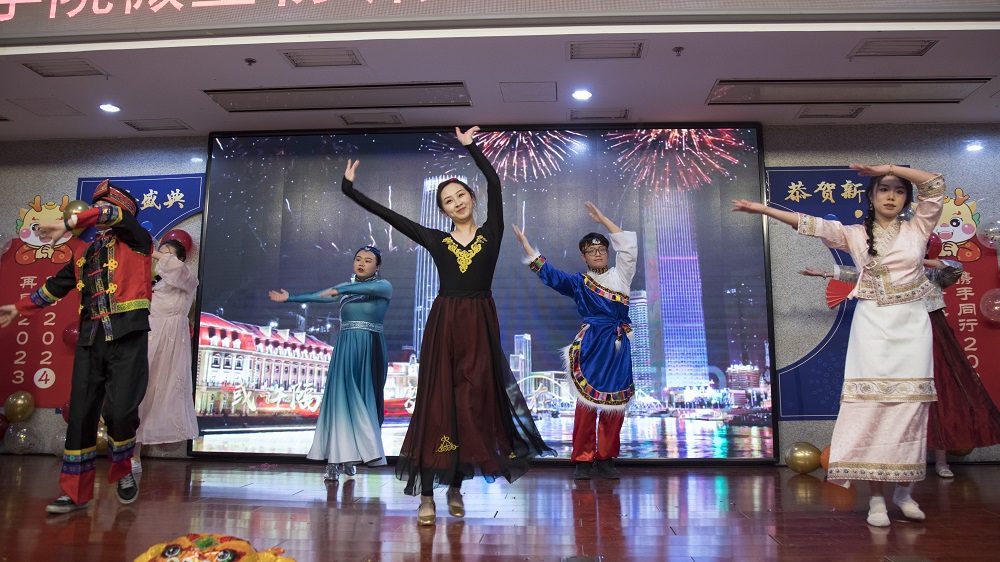 随后,歌曲、京剧、舞蹈、武术、相声、小品等16个节目依次呈现,精彩纷呈,欢声迭起。林明炯书记、杨秀红书记带领职能处室负责人带来了歌舞《潇洒走一回》,唤醒了大家九零年代的青春记忆。老干部的京剧《智取威虎山》和健身球操表演《南泥湾》,展现了离退休老干部积极健康向上的精神风貌。工会舞蹈协会的《你看花儿多红啊》《青山远黛》,舞姿婀娜柔美;武术协会太极扇表演《中国功夫》,柔中带刚,尽显中国传统武学魅力;舞蹈《改革春风吹满地》《Queencard》,节奏活泼,精彩夺目。小品《YeLab老同学显摆大会》《静静去哪儿了》和相声《我要恋爱》,获得了满堂喝彩和欢声笑语。歌曲《江山无限》气势磅礴,国风走秀《就一个字,美》美轮美奂;机关分工会的《敬业阵线联盟》展现了干部职工的昂扬斗志,技术转移转化中心的《歌曲串烧》为观众呈现了音乐的无穷魅力。最后,在舞蹈《相亲相爱》中,联欢会圆满落下帷幕,全场观众掌声雷动,气氛热烈至极。