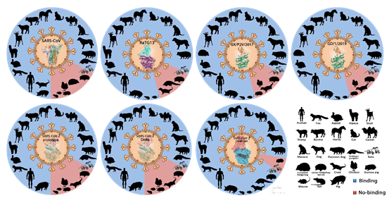 To assess cross-species transmission risks, the team pioneered a receptor-binding screening approach, analyzing ACE2 compatibility across 20+ species and animal-derived coronaviruses (e.g., RaTG13, GD/1/2019, GX/P2V/2017), revealing interspecies receptor recognition patterns (Cell, 2021). This work was selected as one of China’s "Top 10 Advances in Life Sciences" for 2021.