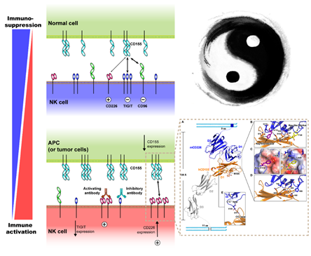 l The unique molecular architecture of CD226 and its molecular basis for recognizing the ligand CD155 were uncovered. This discovery establishes a theoretical foundation for understanding the interaction mechanisms between CD226 and its ligands, as well as for the development of activating antibody drugs targeting CD226. Additionally, the molecular mechanism underlying CD112R's recognition of its ligand CD112 was deciphered (2019, PNAS; 2024, Structure cover story).