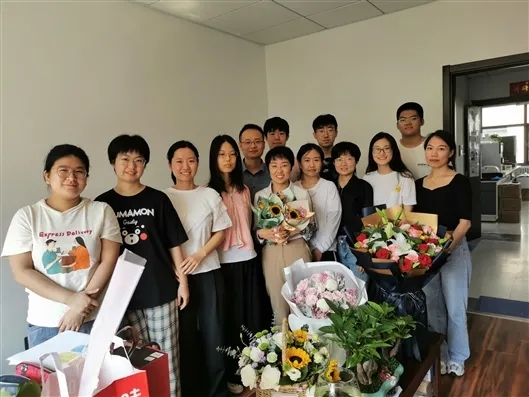 王奇慧(前排捧花者)和团队在一起 微生物所供图