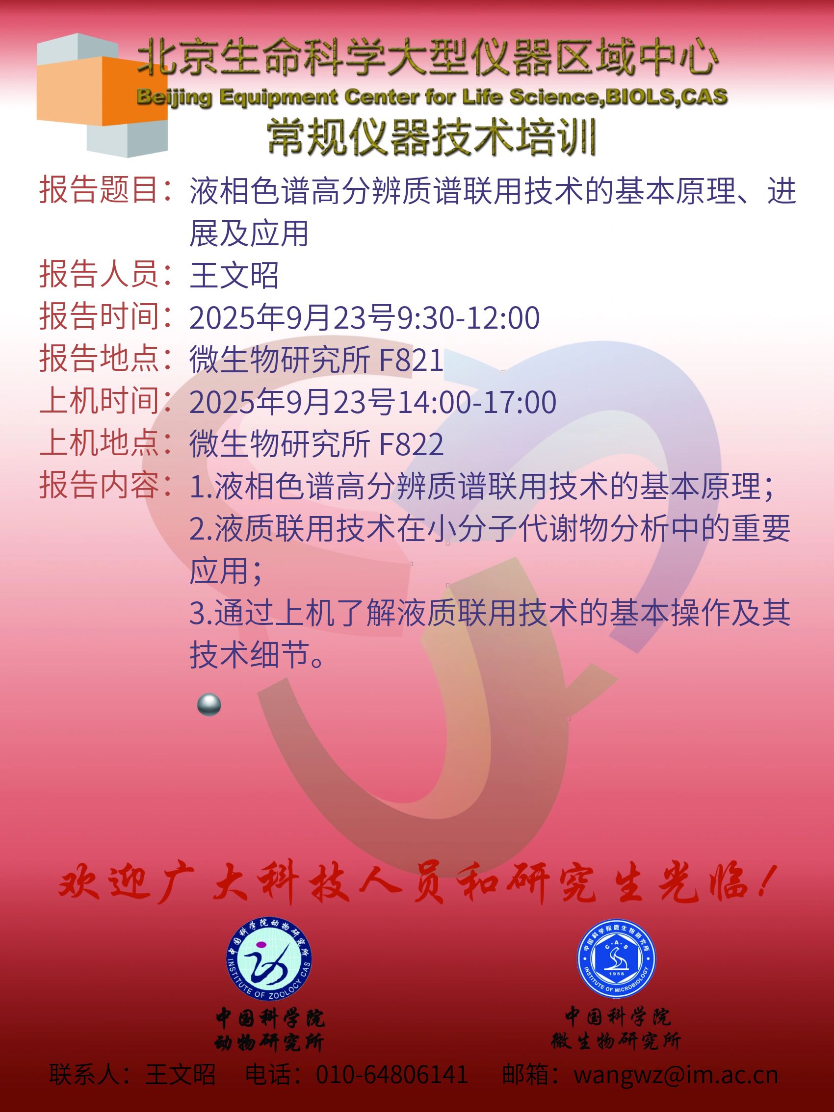 关于液相色谱高分辨质谱联用技术的基本原理、进展及应用技术培训的通知