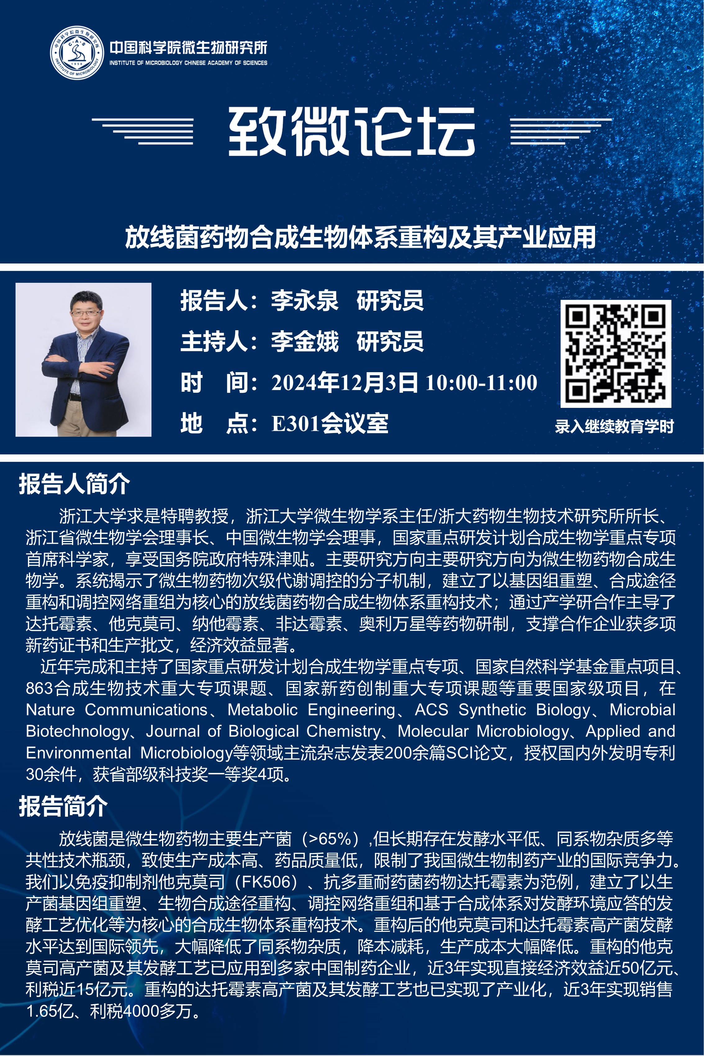 致微论坛:放线菌药物合成生物体系重构及其产业应用