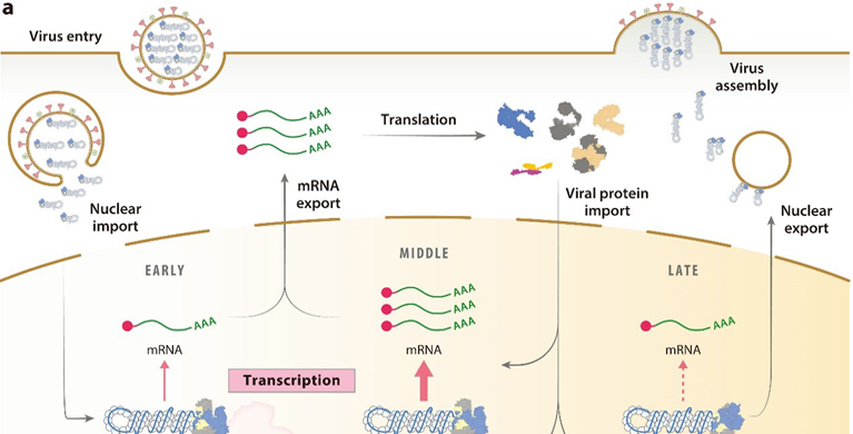 图1 流感病毒的生命周期和病毒RNA合成动态