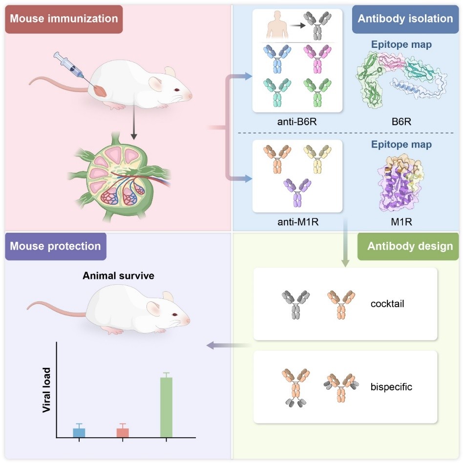 近年来,全球多地暴发猴痘疫情,对公共卫生安全构成严重挑战。目前,虽然已有疫苗获批用于猴痘预防,但其保护效力仍显不足;临床上使用的小分子药物如特考韦瑞(Tecovirimat)也面临疗效有限的问题。因此,研发安全高效的抗体类治疗策略已成为当前应对猴痘疫情的迫切需求。