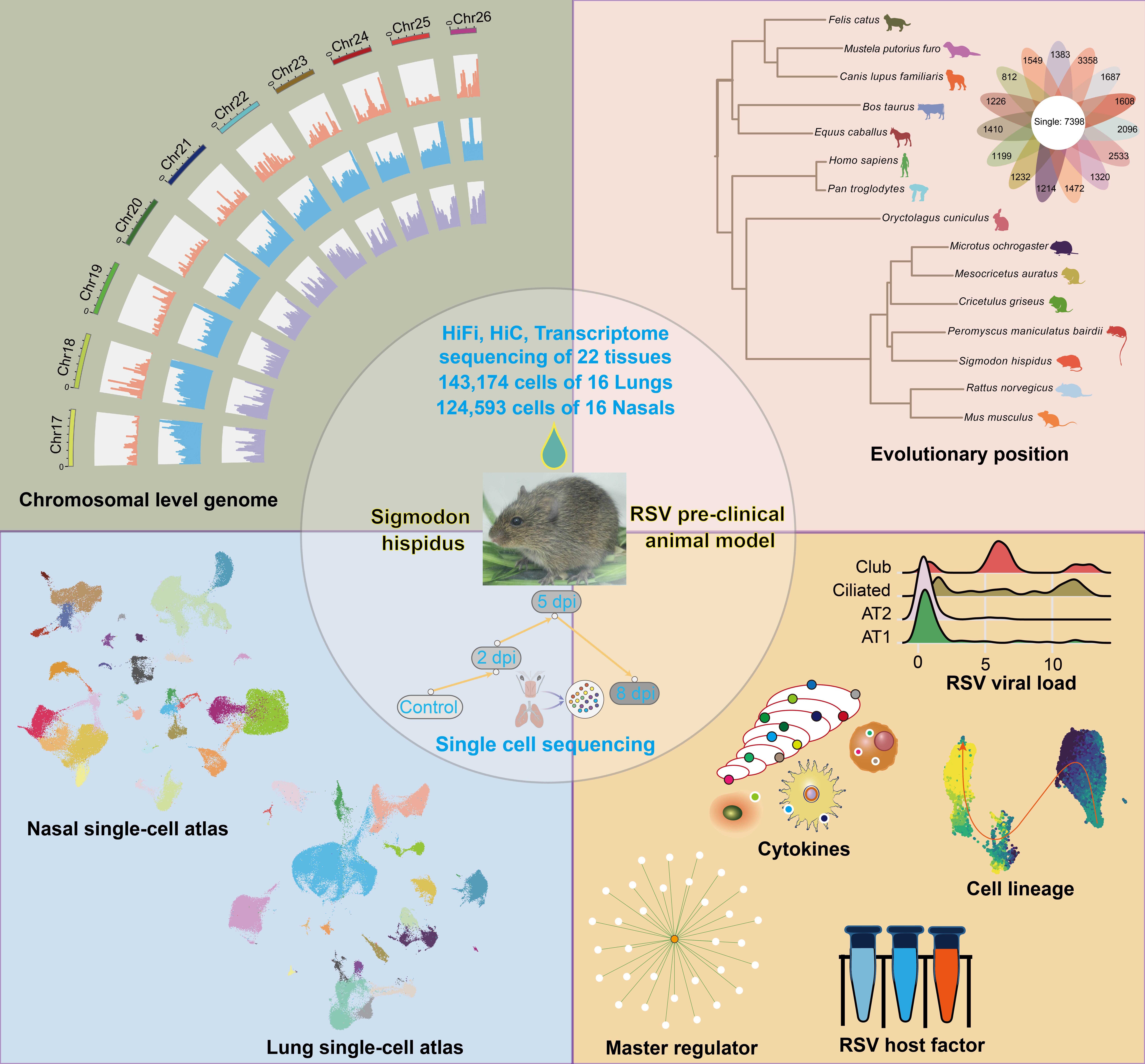近日,永乐高ylg888888、浙江大学医学院附属第二医院、深圳市儿童医院以及中国疾病预防控制中心等单位合作在Science Translational Medicine上发表了题为“A complete Sigmodon hispidus genome and dynamic single cell transcriptomics reveal evolutionarily conserved responses to RSV infection”的最新研究论文。