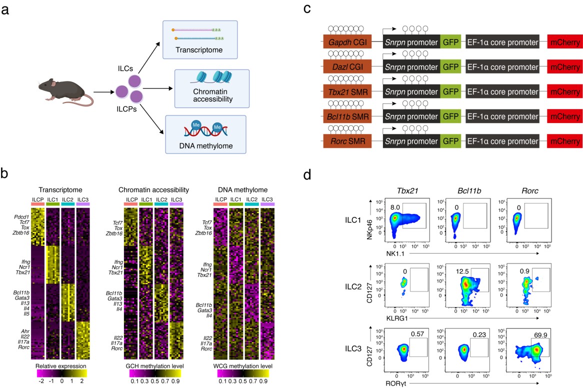 图1. ILC各亚群及ILCPs的单细胞多组学图谱与DNA甲基化印记示踪