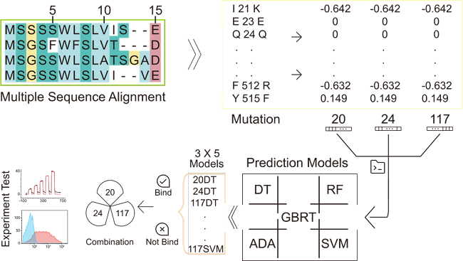 SARS-CoV-2进入宿主细胞需要其刺突(S)蛋白和宿主血管紧张素转换酶2(ACE2)的结合。SARS-CoV-2刺突(S)蛋白与来自非人类物种的ACE2之间的结合能力表明这些物种对SARS-CoV-2的易感性;结合生态学数据和进化证据,可辅助确定相关物种为SARS-CoV-2的可能起源和/或中间宿主。因此,筛选出多物种ACE2与SARS-CoV-2的S蛋白之间的结合是非常必要的。目前可用的生物信息学方法具有极高的假阴性率,仍然无法精确预测SARS-CoV-2刺突(S)蛋白和不同物种ACE2的结合。